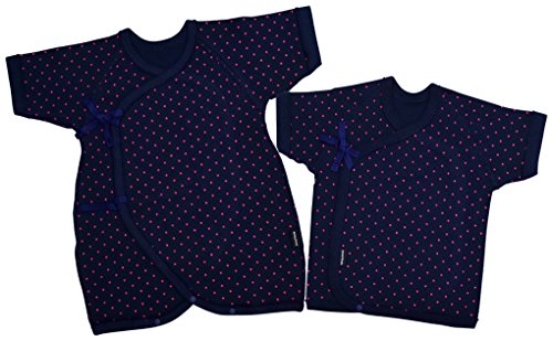 アンナニコラ 水玉柄 新生児肌着2点セット 50-60cm ネイビー I-15018-48 E32 日本製