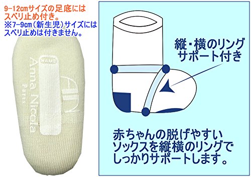 アンナニコラ 3足組 2色使いシンプルソックス(新生児用) 脱げにくい仕様 7cm - 9cm クリーム 6042 日本製