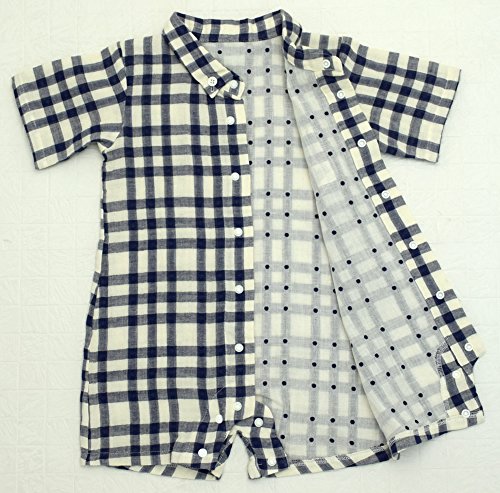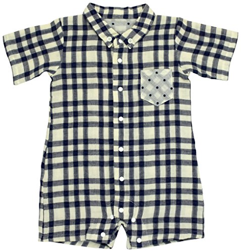 アンナニコラ ガーゼ 襟付半袖ロンパス チェック 90cm ネイビー AN10-46R E22 日本製
