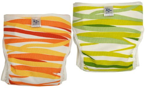 村信 日本製 2枚組 ウエーブボーダー柄 おむつカバー(後ろ留めタイプ) 70cm オレンジ&グリーン JF206B