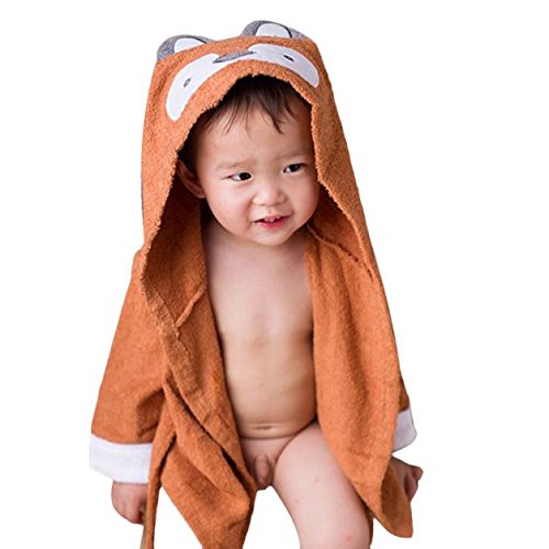 杜屋トヤ かわいいデザインのアニマルベビーバスローブ 赤ちゃんモデルのキャップ付きタオル