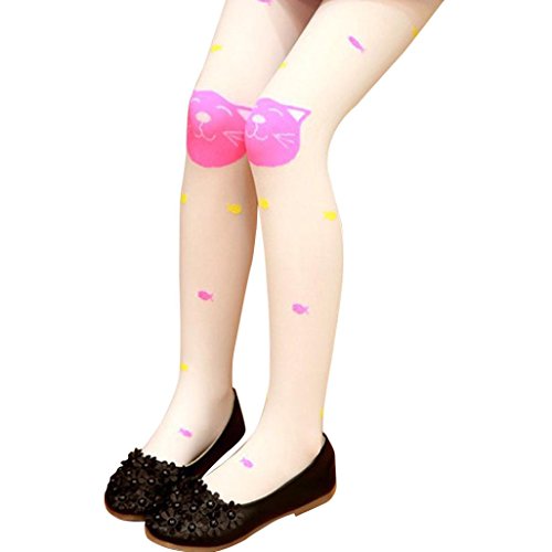 杜屋トヤ 女の子 カジュアル 遊び お出かけ 漫画のジャカード 子猫 釣り パンティーストッキング、ボトムソックス (ホワイト)