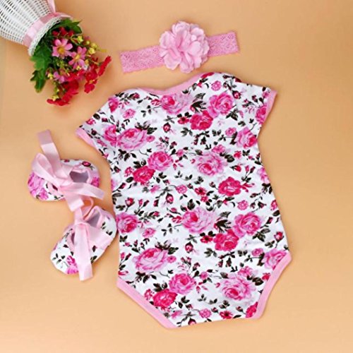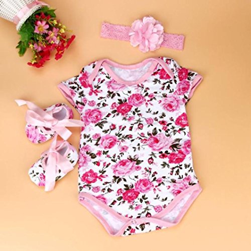 - ベビー服 ボディースーツ、杜屋トヤ 洋式 女の子 赤ちゃん カジュアル ファッション 遊び お出かけ プレゼント ベビーガールフローラルロンパーボディスーツのヘッドバンドシューズセット