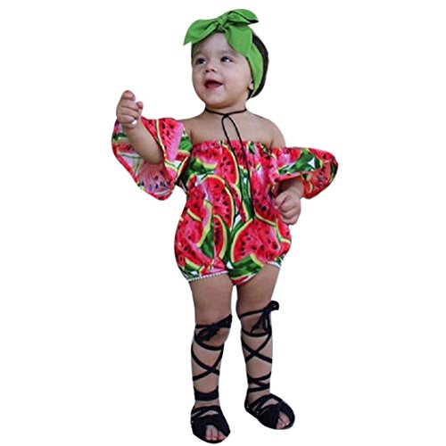 ベビー服 ボディースーツ、杜屋トヤ 洋式 女の子 赤ちゃん カジュアル ファッション 遊び お出かけ プレゼント ベビーガールズオフショルダージャンプスーツヘッドバンド服セット