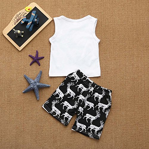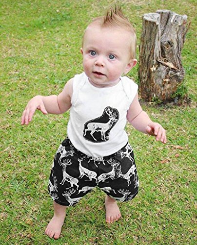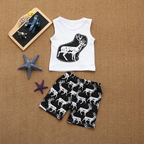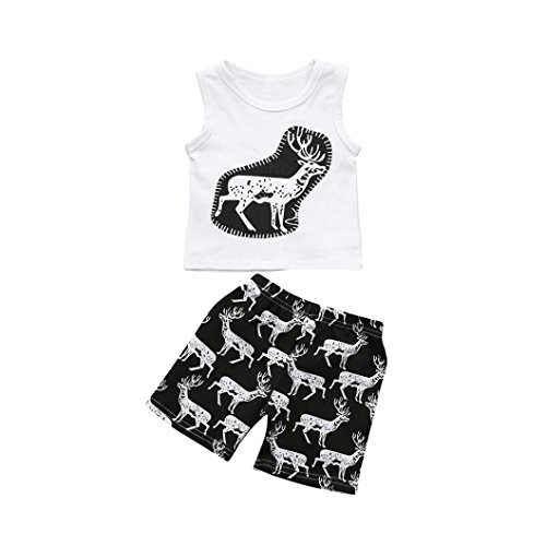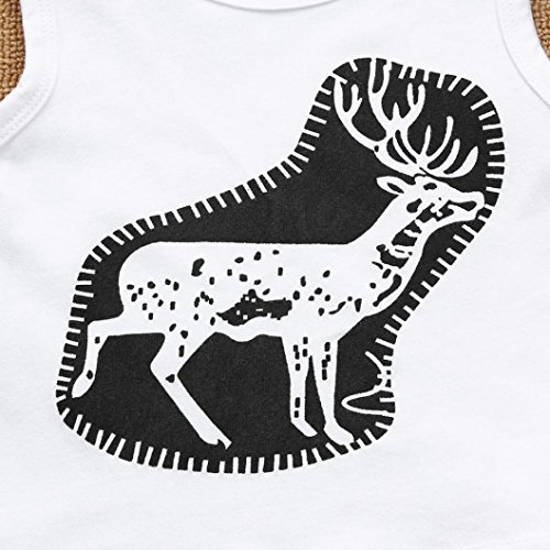杜屋トヤ 幼児 鹿のプリント ノースリーブシャツ ベスト+ショートパンツ かこいい 男女兼用 コットン ホワイト70,80,90,100,110