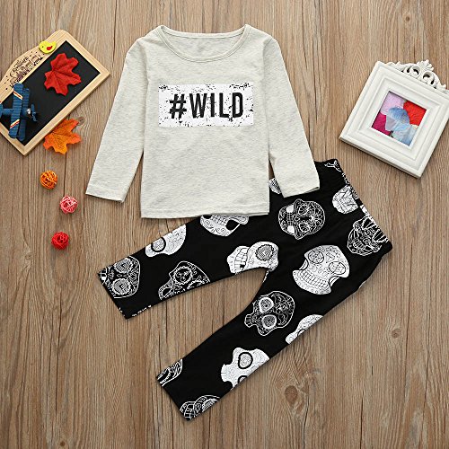 杜屋トヤ 赤ちゃん、アルファベットプリント、ロングスリーブ、トップスウェット+ズボン、2セットWILD、グレー、70,80,90,95