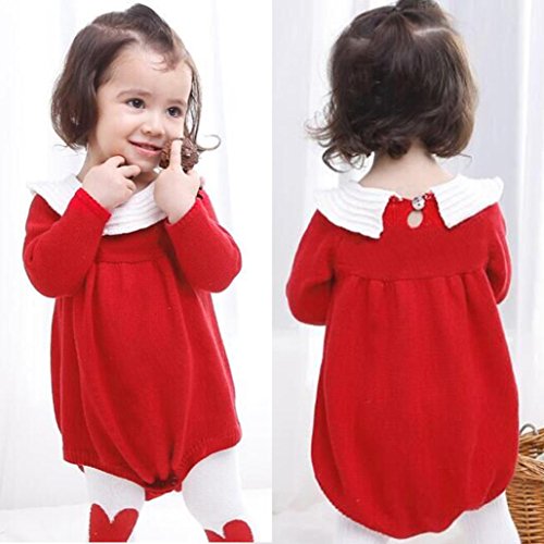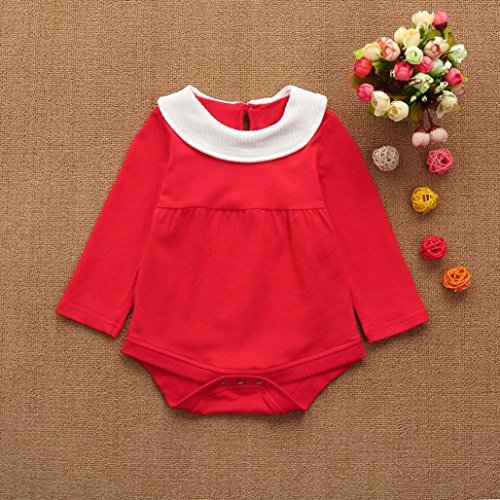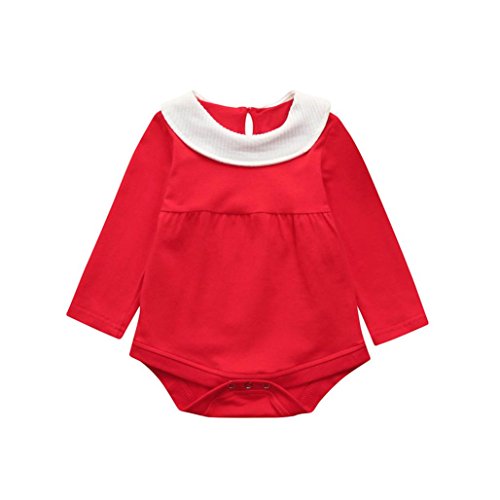 杜屋トヤ ベビーソリッドカラー 長袖の人形の襟セーター ジャンプスーツ カバーオール かわいいデザイン 気持ちいい 可愛い カジュアル 赤ちゃん コットン 赤70,80,90,100