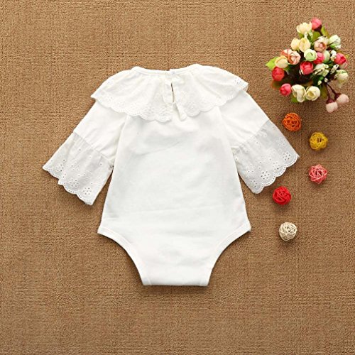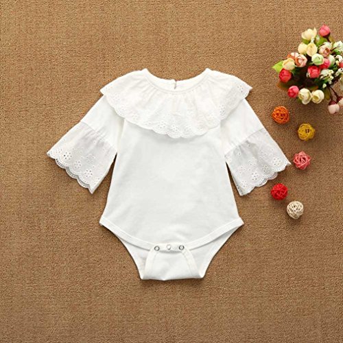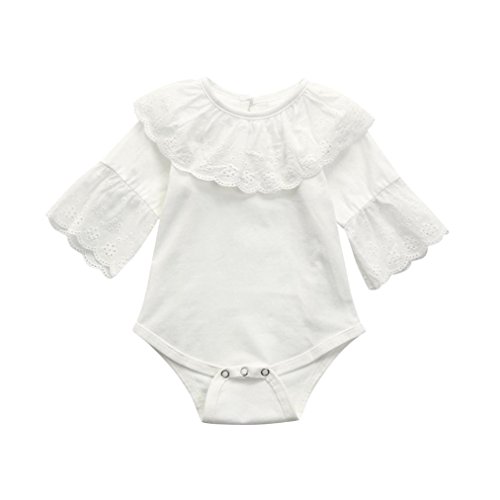 杜屋トヤ 赤ちゃん、無地、レース、スピーカースリーブ、ロングスリーブ、ロンパー、ジャンプスーツ ホワイト、ピンク70,80,90,100