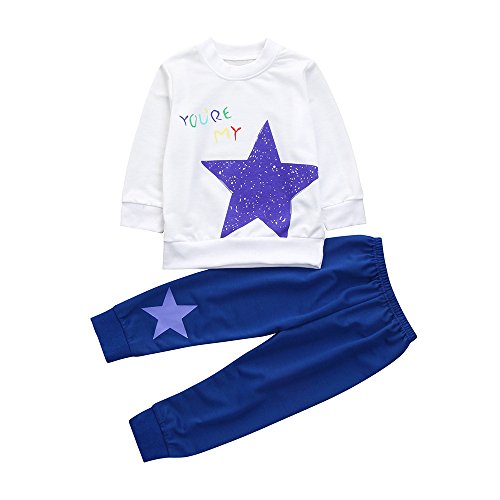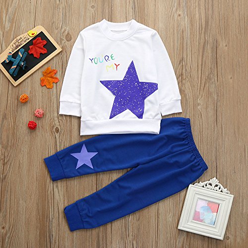 杜屋トヤ 子供、英字、スタープリント、ロングスリーブ、トップスウェット+ズボン、2セット、白、70,80,90,95