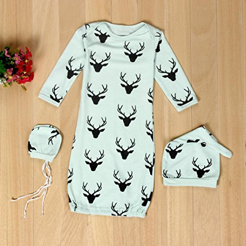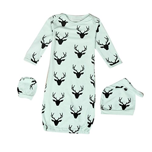 杜屋トヤ 赤ちゃん用おくるみ 寝袋 ベビー寝巻き + 手袋 + 帽子 セット 敷物 ロンパース 鹿 柔らかい オールシーズン 出産祝いプレゼント 新生児 ベビー 48cm / 54cm (M, 緑)
