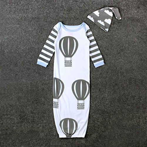 杜屋トヤ 赤ちゃん用おくるみ 寝袋 寝巻き ベビースリーパー + 帽子 セット 敷物 ロンパース 雲 ボーダー 柔らかい オールシーズン 出産祝いプレゼント 新生児 ベビー 83cm (白)
