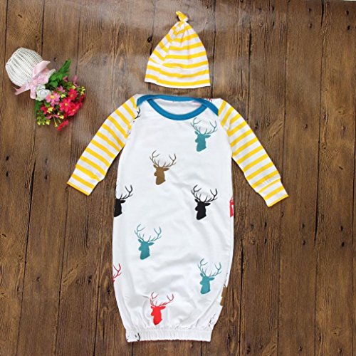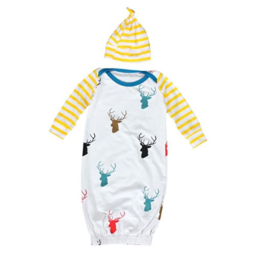 杜屋トヤ 赤ちゃん用おくるみ 寝袋 ベビー寝巻き + 帽子 セット 敷物 ロンパース 鹿 柔らかい オールシーズン 出産祝いプレゼント 新生児 ベビー 60cm / 70cm (S, 黄)