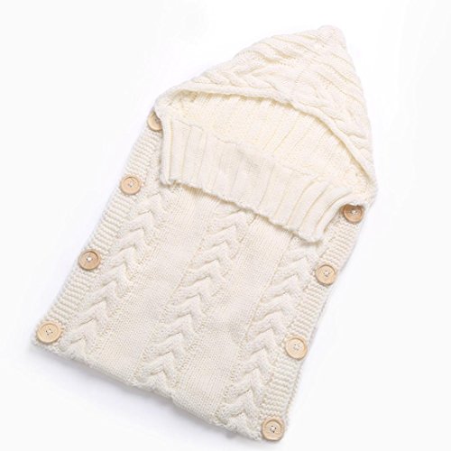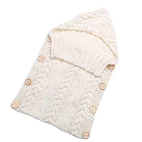 杜屋トヤ 赤ちゃん用おくるみ ブランケット 寝袋 ベビー抱っこひも 柔らかい オールシーズン ニット フード付き 無地 ねじれ 出産祝いプレゼント 新生児 ベビー 70 x 39 cm / 0-12 ヶ月 (70 x 39 cm / 0-12 ヶ月, 白)
