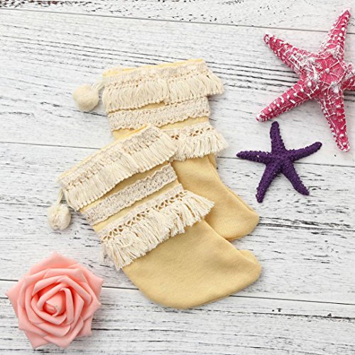 杜屋トヤ 子供、小さなタッセル、レース、ステッチ、靴下 イエロー、S、M、L