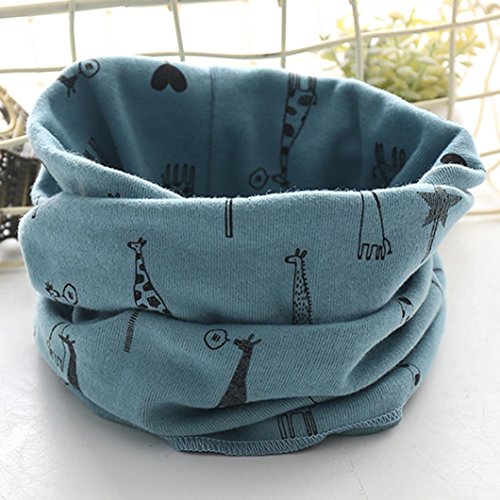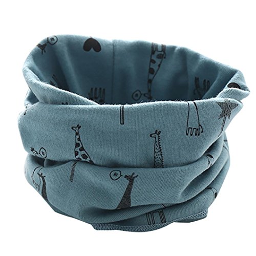 杜屋トヤ ベビー小物 おでかけ用品 マフラー スカーフ 襟巻 ネックウォーマー 宇宙 キリン ハウス 格子紋 星 英字 水波紋 防寒 柔らか かわいい ミルク 春 秋 冬 赤ちゃん 女の子 男の子 プレゼント お出かけ 遊び 40 x 22 cm (40 x 22 cm, キリン 青)