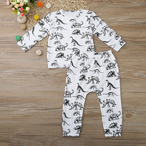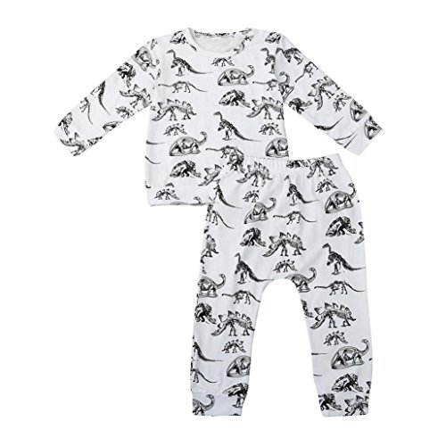 杜屋トヤ モンクレール 新生児服 男の子 女の子 赤ちゃん 恐竜デザイン長袖ホワイトトップス パンツ 格好いいプリント洋式秋服 秋 冬 コスチューム衣装セット 遊び 記念 撮影 誕生日 ルーム