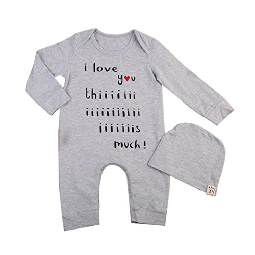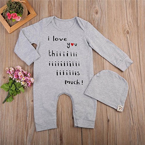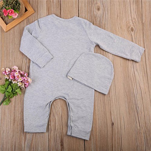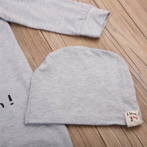 杜屋トヤ 新生児服 女の子 男の子 ユニセックス 赤ちゃん 文字プリント長袖トップス グレイ シンプル 帽子 ボディースーツ 洋式秋服 秋 冬 遊び 記念日 撮影 誕生日 ルームウェア