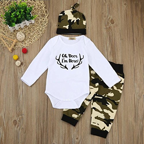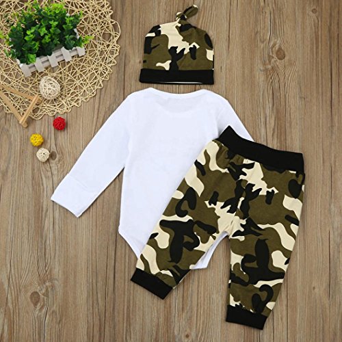 杜屋トヤ 新生児服 ルームウェア 上下セット 英字 迷彩 長袖Tシャツ ロンパース パンツ 帽子 かっこういい 洋式 秋 冬 カジュアル 遊び お出かけ プレゼント 女の子 男の子 ユニセックス 赤ちゃん 70/80/90/100 (70, 緑)