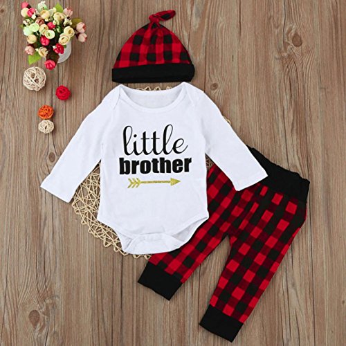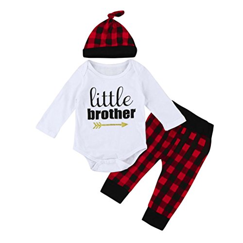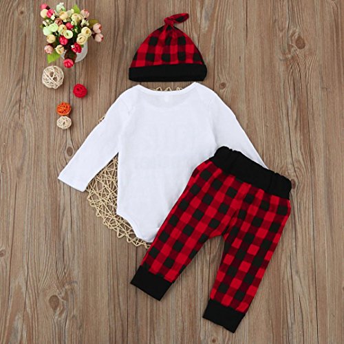 杜屋トヤ 新生児服 ルームウェア 上下セット 格子縞 英字 長袖Tシャツ ロンパース パンツ 帽子 かわいい 洋式 秋 冬 カジュアル 遊び お出かけ プレゼント 女の子 男の子 ユニセックス 赤ちゃん 60/70/80/90/100 (60, 赤)