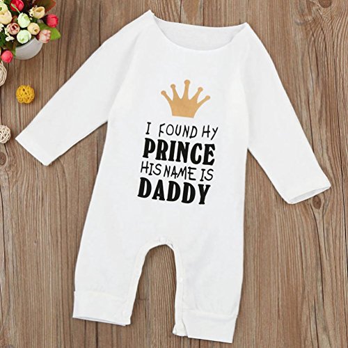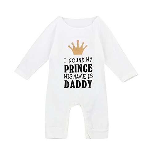 杜屋トヤ ベビー 新生児服 長袖ロンパース カバーオール ボディースーツ スナップ 英字 ティアラ ルームウェア かわいい 洋式 秋 冬 カジュアル 遊び お出かけ プレゼント 女の子 男の子 ユニセックス 赤ちゃん 70/80/90/100 白 (90, 白)