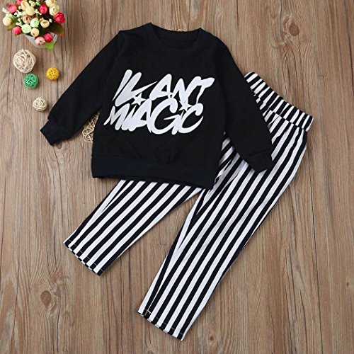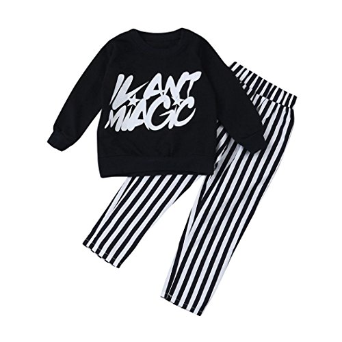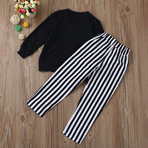杜屋トヤ 子供服 上下セット 英字 ボーダー 長袖Tシャツ パンツ かわいい ファッション 洋式 秋 冬 カジュアル 遊び お出かけ プレゼント 女の子 ガールズ 90/100/110/120/130 黒 (120, 黒)
