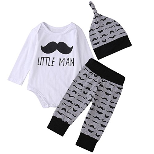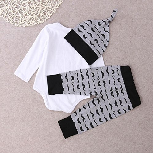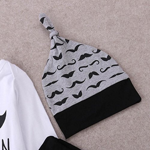 杜屋トヤ 新生児服 上下セット 長袖ロンパース Tシャツ パンツ 帽子 ルームウェア ヒゲ模様 英字 かわいい 洋式 秋 冬 カジュアル 遊び お出かけ プレゼント 女の子 男の子 ユニセックス 赤ちゃん 70/80/90/100 灰色