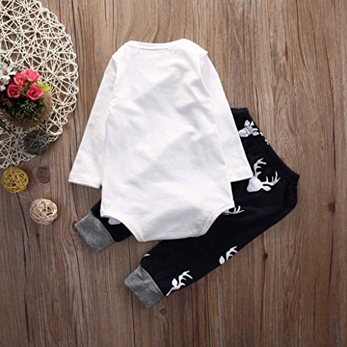 杜屋トヤ 新生児服 上下セット 長袖ロンパース Tシャツ パンツ ルームウェア 英字 鹿 かわいい 洋式 秋 冬 カジュアル 遊び お出かけ プレゼント 女の子 男の子 ユニセックス 赤ちゃん 70/80/90/100 黒