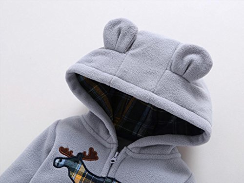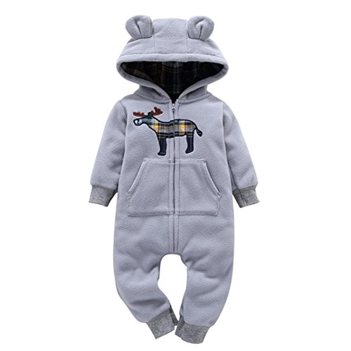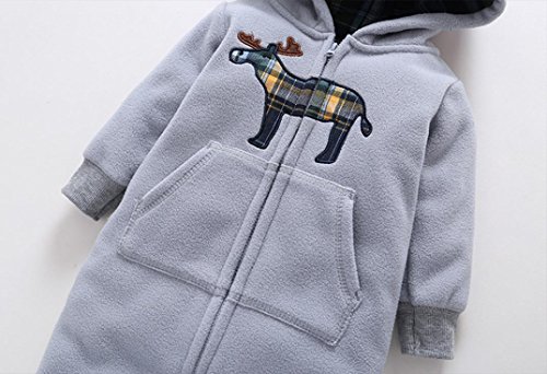杜屋トヤ ベビー 新生児服 長袖フード付きロンパース カバーオール ボディースーツ 前開き ジッパー 冷え防止 無地 ルームウェア かわいい 洋式 秋 冬 カジュアル 遊び お出かけ プレゼント 女の子 男の子 ユニセックス 赤ちゃん 59cm/62cm/65cm/68cm/71cm グレー