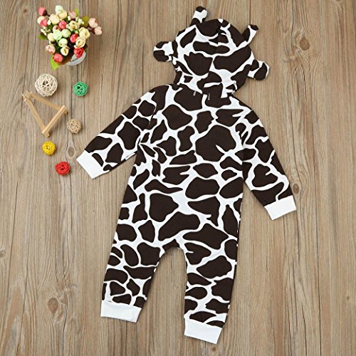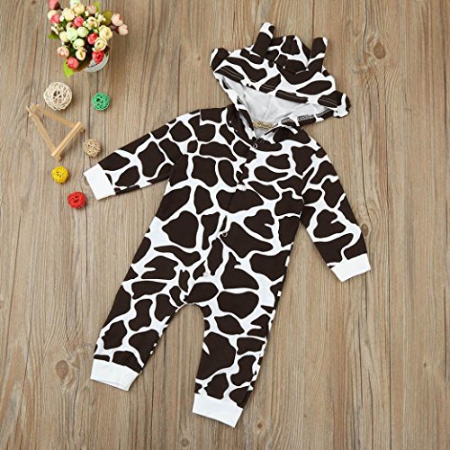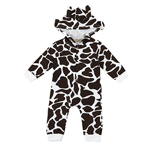 杜屋トヤ ベビー 新生児服 前開きフード付き長袖ロンパース カバーオール ボディースーツ 乳牛 ルームウェア かわいい 洋式 秋 冬 カジュアル 遊び お出かけ プレゼント 女の子 赤ちゃん 70/80/90/100 ブラウン (80, ブラウン)