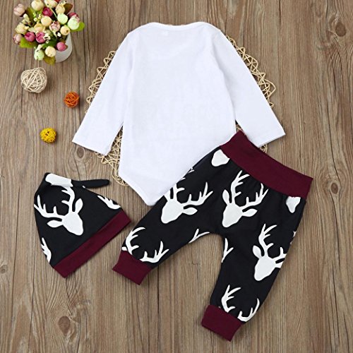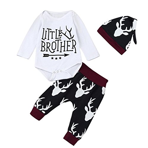 杜屋トヤ 新生児服 Little Brother 上下セット Tシャツ トップス 長袖ロンパース+鹿総柄パンツ+ハット 三点セット ルームウェア かわいい 女の子/ガールズ/男の子/子供/赤ちゃん/ベビー 秋 冬 カジュアル お出かけ プレゼント 70/80/90/100 黒