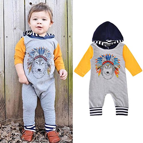 杜屋トヤ 新生児服 ベビーロンパース かわいいワンちゃんプリント長袖カバーオール フード付き ルームウェア 赤ちゃん プレゼント 0-18M