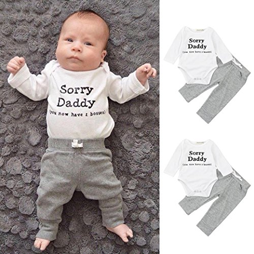 杜屋トヤ 新生児服 ベビー上下セット Sorry Daddy かわいい無地長袖ロングパンツ トップス ロングパンツ ナチュラル ルームウェア 赤ちゃん・子供・キッズ プレゼント 0-18M 70cm/80cm/90cm/100cm