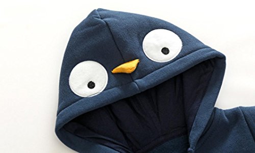 杜屋トヤ 紺色ペンギン 新生児服 コスチューム ベビー長袖フード付きロンパース かわいい着ぐるみ 前開き ジッパー カバーオール ルームウェア 防寒着 子ども服 赤ちゃん プレゼント 0-18ヶ月 59/66/73/80