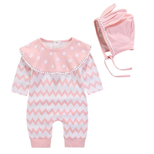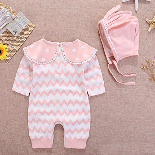 杜屋トヤ 女の子 ガールズ 男の子 ボーイズ キッズ 帽子 上下セット 長袖 条纹 ルームウェア かわいい 洋式 秋 冬 カジュアル 遊び お出かけ プレゼント 50 60 70 80 子供服 (ピンク, 70)