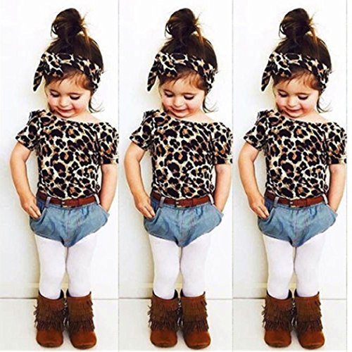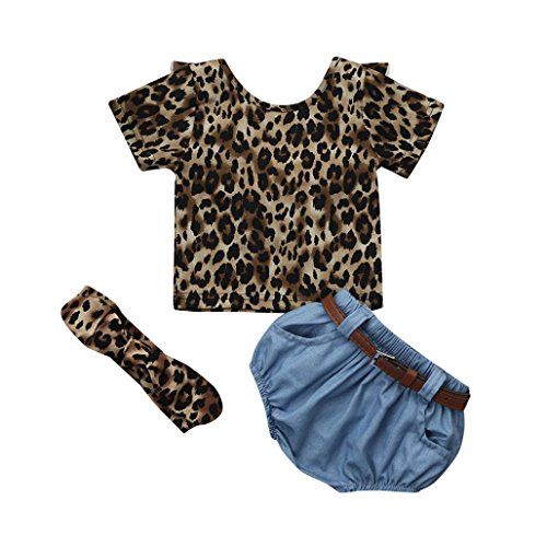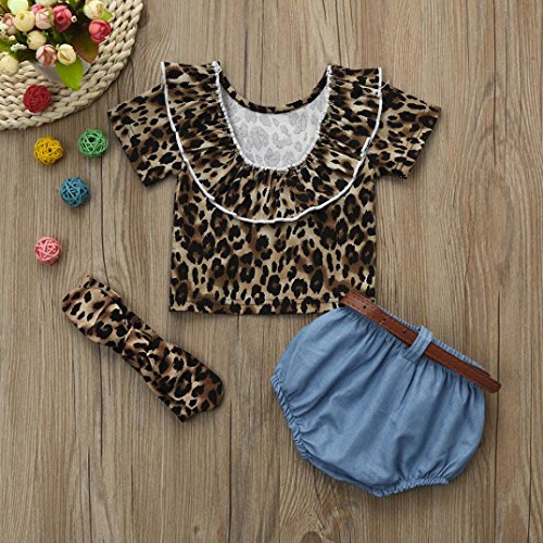 - 杜屋トヤ 赤ちゃん、ヒョウ、ショートスリーブ、トップ+ショーツ+ヘアバンド+ベルト、4点セット かわいいデザイン 気持ちいい 可愛い カジュアル 赤ちゃん プリンセス 青70 80 90 100