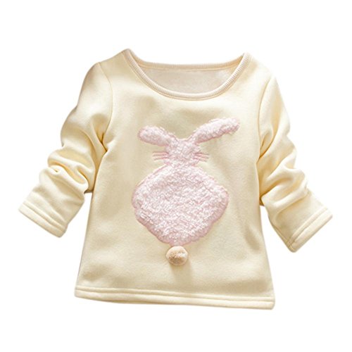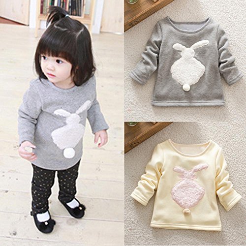 杜屋トヤ 子供 長袖 可愛い 漫画のウサギのTシャツ プルオーバー セーター 秋 冬 ルームウェア 暖かい 保温 プレゼント ギフト グレー、ベージュ ロングスリーブ 80/90/100/110 (ベージュ, 80)