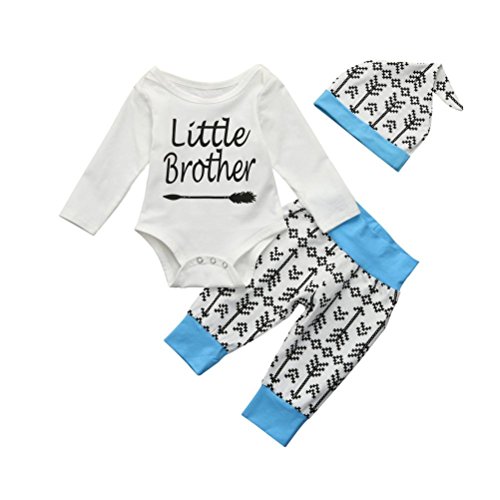 杜屋トヤ 赤ちゃん、長袖 英字 矢印、スリーピーススーツ かこいいデザイン ガールズ ボーイズ 女の子 男の子 通用 ファッション 気持ちいい 可愛い カジュアル 2デザイン 青70,80,90,100 1PCロンパー+ 1PCのパンツ+ 1PCの帽子