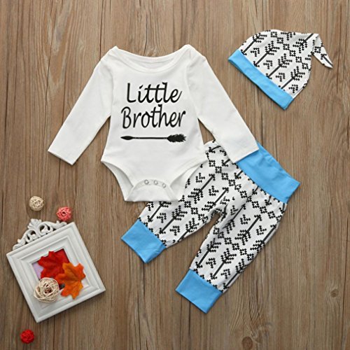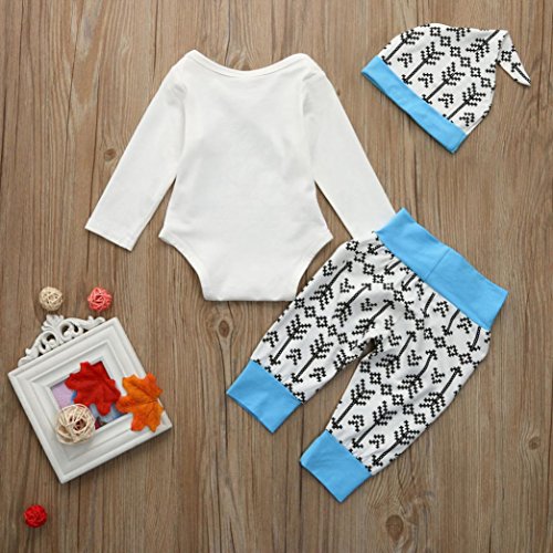 - 杜屋トヤ 赤ちゃん、長袖 英字 矢印、スリーピーススーツ かこいいデザイン ガールズ ボーイズ 女の子 男の子 通用 ファッション 気持ちいい 可愛い カジュアル 2デザイン 青70,80,90,100 1PCロンパー+ 1PCのパンツ+ 1PCの帽子