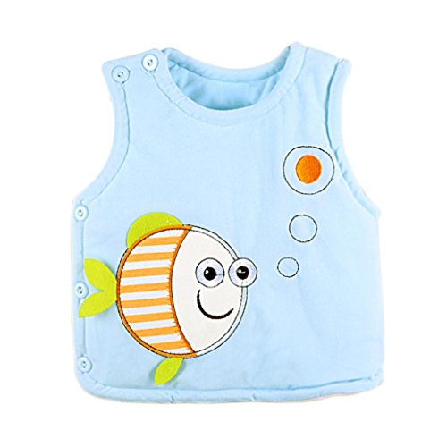 杜屋トヤ 新生児服 ベスト あったか・やわらかベビーベスト 魚 ノースリーブ 側開き 防寒 保温 ルームウェア かわいい 秋 冬 カジュアル 部屋着 遊び お出かけ プレゼント ベビー 女の子 男の子 ユニセックス 赤ちゃん 29cm/32cm/35cm 青 ピンク 黄色