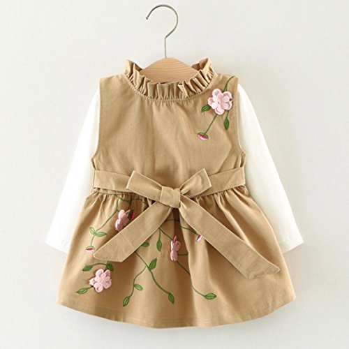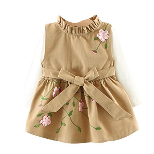 杜屋トヤ 子供 ポルカドット 可愛い 赤ちゃん スカート ロングスリーブ 気持ちいい 秋 冬 ルームウェア 暖かい ドレス、プリンセスドレス 女の子、花、綿、長袖、Tシャツドレス、2ピース ピンク、グリーン、カーキ、70 80 90 100 (カーキ, 80)