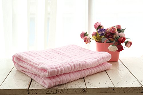Hessie 赤ちゃん 6重ガーゼ コットン ベビーバスタオル 全3色 (90*110cm, ピンク)