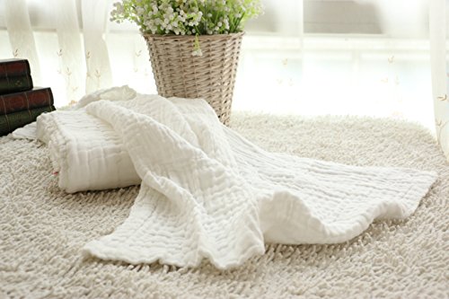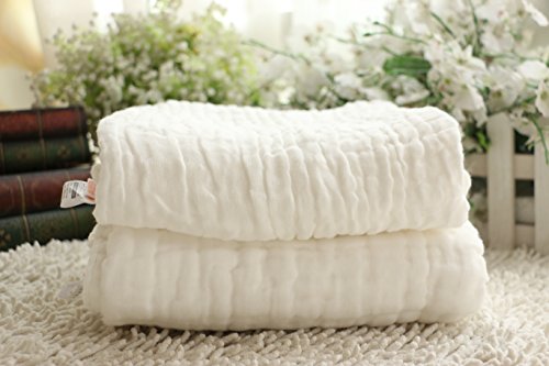 Hessie 赤ちゃん 10重ガーゼ コットン ベビーバスタオル 全3色 (100*115cm, ホワイト)