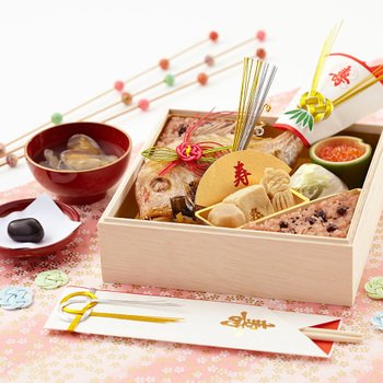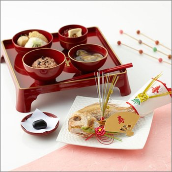 内容:鯛 鯛、食塩 蛤 はまぐり、砂糖、醤油、発酵調味料、(原材料の一部に小麦、大豆を含む) 赤飯 もち米(国産)、小豆、食塩、小豆抽出液 いくら醤油漬け いくら、醤油、米発酵調味料、植物たん白加水分解物、還元水飴、みりん、砂糖、食塩、魚介エキス、調味料(アミノ酸等)、(原材料の一部に小麦、大豆、さばを含む)