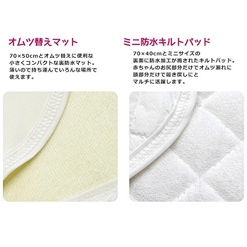 更にあると便利なミニ防水キルトパッド、おむつ替えシートも入った充実の11点セット。