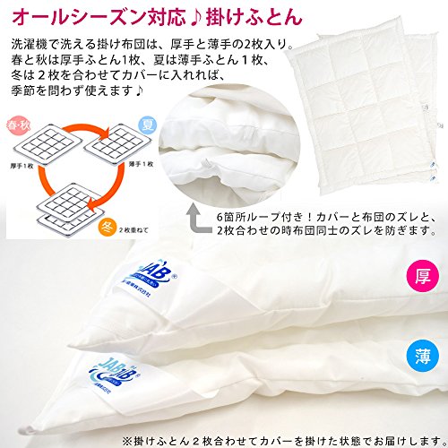 洗濯機で洗える掛け布団は、厚手と薄手の2枚入り。