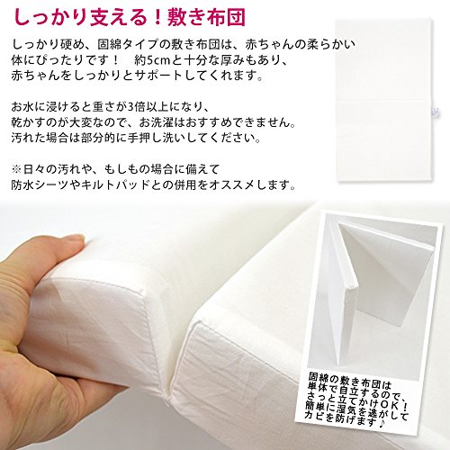 赤ちゃんの骨をしっかり支える固綿敷き布団は、厚み5cmのたっぷりボリューム!