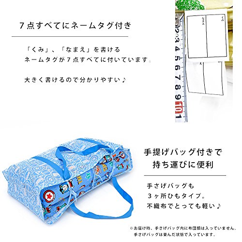 - 【仕様】 布団カバー:3ヶ所ヒモ付き、裏無地カラー ピローケース:裏打合わせ式、両面プリント 専用バッグ:3ヶ所ヒモ付き 7点全て:ネームタグ付き