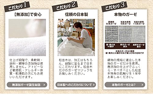 - 【生産国】日本製 松並木オリジナル エコテックス規格100Class1認証製品。世界で松並木だけの認証番号 N-KEN 07025。さらに安全!綿の加工屋が考え作った本物の無添加ガーゼで、アレルギー敏感肌アトピーの方にも好評