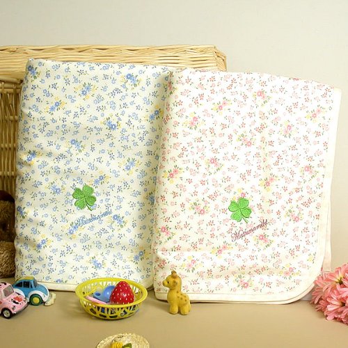 - 【ベビーサイズ】約幅85×長さ115cm 上1枚:ブルー系小花柄超厚手118本ガーゼ 下4枚:無添加オフホワイト 重さ:約310g