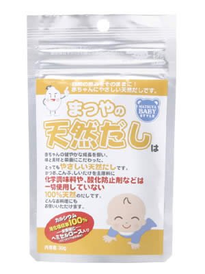 「まつやの天然だし 30g」は、いわし、こんぶ、かつお、椎茸を原料に、自然の旨味をそのままパックした天然だしです。化学調味料や酸化防止剤などは、使用していません。さとうきび由来の食物繊維、ヘミセルロースをプラス。 内容量 : 30g